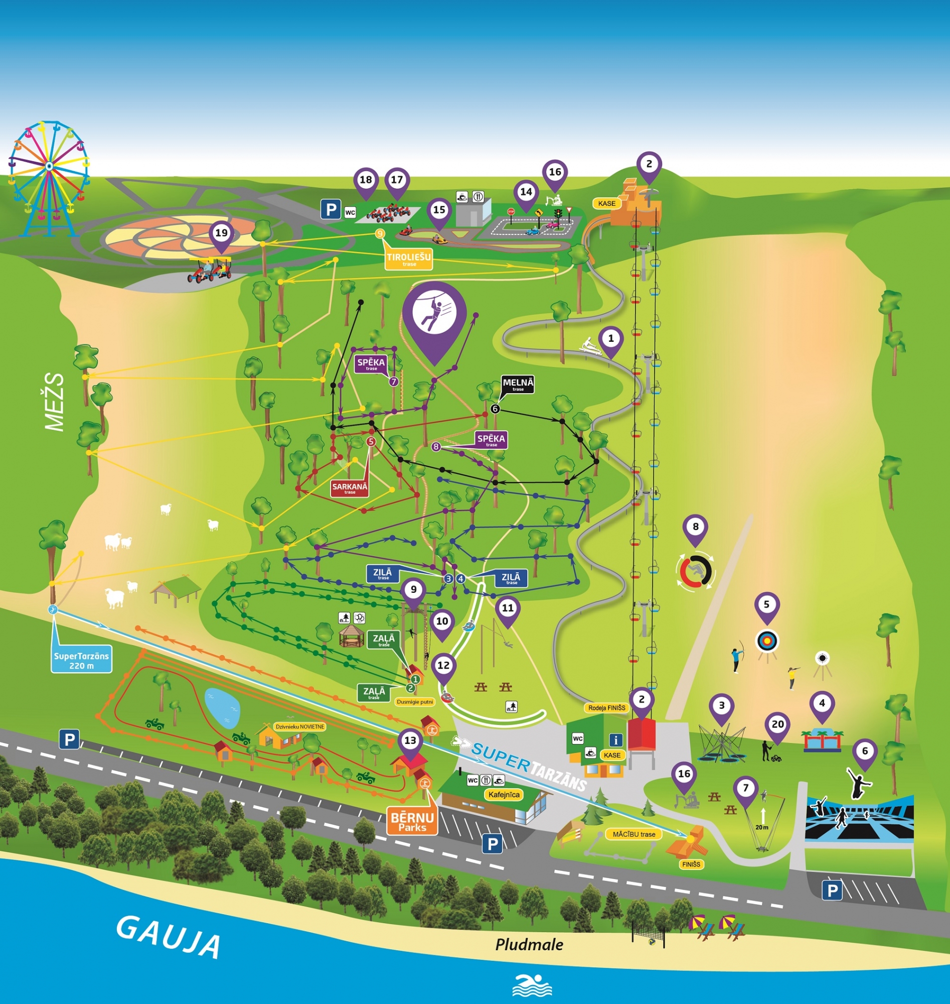 43€ 25€Kas iekļauts šajā biļetē?- (7€) Tarzāna šķēršļu parks