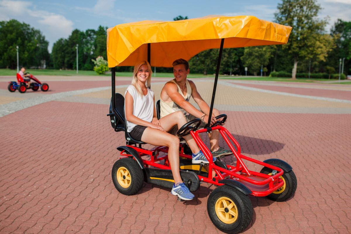 Piedāvājam četrvietīgus ģimenes velomobīļus ar papildvietu bērnam (max 30kg). Noma atrodas Svētku laukumā pie Siguldas velo celiņa. Līdzi dodam karti ar 30, 60 vai 90 min. maršrutiem, kuri ved caur Siguldas ievērojamākajām vietām.